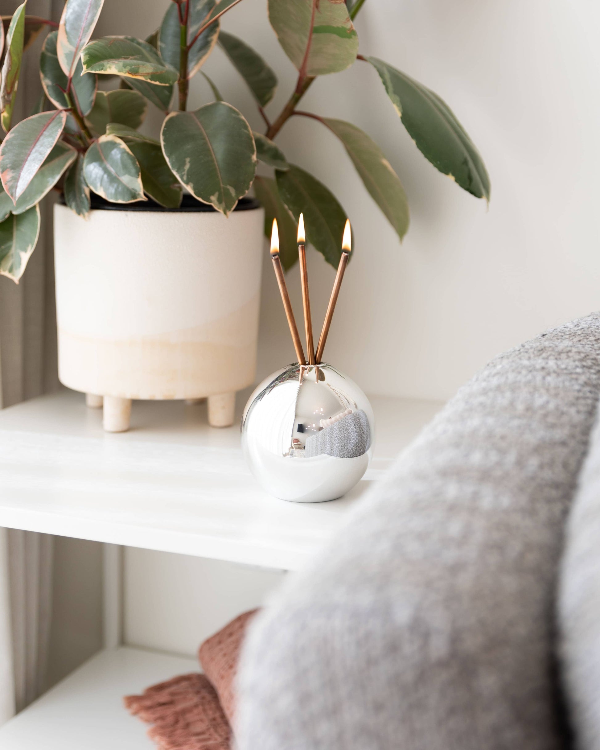The Silver Metallic Neva stands as a bold statement piece, destined to be the talk of the room with its eye-catching shimmer and sleek allure. It has a minimalistic yet bold and beautiful presence. Crafted from hand-blown borosilicate glass, this vase is designed to hold Pristine Oil® and Everlasting Candle sticks (both sold separately) to complete the timeless candlelight experience. Why you'll love it: * Sustainable, reusable design resonates with today’s eco-conscious consumers * Encourages repeat sales with Pristine Oil® refills * A thoughtful gift for any occasion for the person who has everything * Adds timeless ambiance to everyday moments * 100% recyclable packaging How to Use: 1. Fill the vase with Pristine Oil®. 2. Insert Everlasting Candle sticks. 3. Light for elegant, smoke-free candlelight ambiance. A unique product your customers will adore.